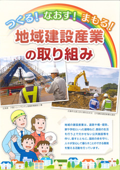 地震や台風、大雪や竜巻など予期せぬ災害が発生したとき、真っ先に災害現場に駆けつけ、被害を最小限に抑えるため、応急復旧を行っている・・・そんな地域建設業の活動状況をパネルで紹介します。また、建設のしごとを知ってもらうための子ども向けパンフレット『建設学習帳』の配布等も行います。