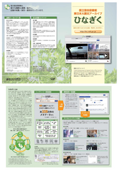 東日本大震災に関連する記録を包括的に検索できるポータルサイト「ひなぎく」。震災の記録・教訓を次の世代へ伝え、今後の防災・減災対策に役立てることを目的としています。展示ブースでは、防災学習や調べ学習での活用法のご紹介のほか、連携するアーカイブのパンフレットの配布やプレゼンテーションを行います。
