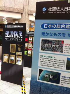 建設会社の災害時の活動紹介、建設防災トレーディングカードの配布