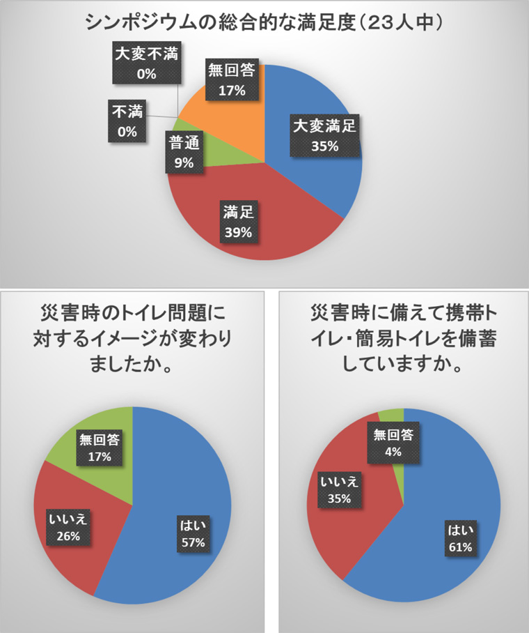 - 今後も、災害用トイレに関するシンポジウム、セミナー等があると幸いです。