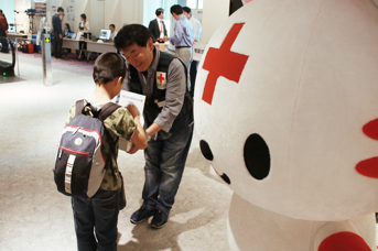 ブースにて被災地への義援金を呼びかけ