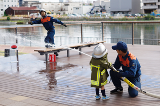 放水による消防活動の体験
