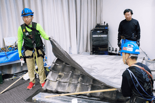 被災屋根の応急処置のワークショップ